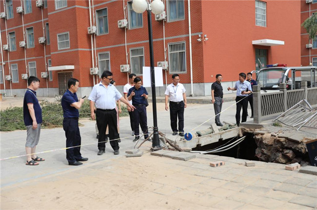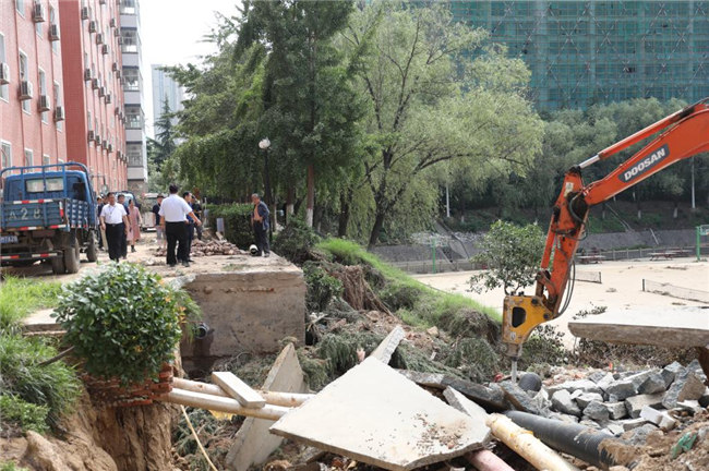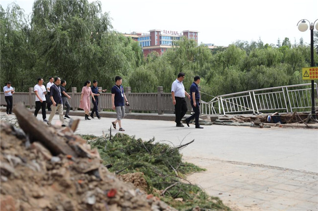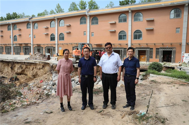 工作會(huì)結(jié)束后,平奇一行來(lái)到學(xué)校受災(zāi)嚴(yán)重的藝術(shù)樓、書(shū)望書(shū)院、后山、無(wú)名湖等處,實(shí)地勘察受災(zāi)情況,看望和慰問(wèn)了災(zāi)后重建的工作人員們,代表教育廳對(duì)他們不辭辛苦、積極進(jìn)行防汛救災(zāi)工作表示的感謝。