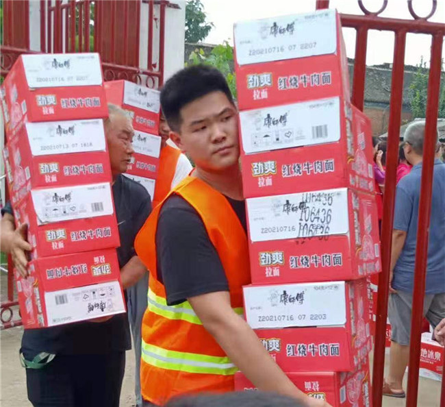 藝術(shù)學(xué)院2020級音樂表演專升本3班的張運凱第一時間加入了河南防汛志愿者的微信群。7月22日,他聯(lián)系到了一位從航空港區(qū)去市區(qū)送物資的志愿者,搭順風(fēng)車把面包送到鄭大五附院一號樓13樓兒童康復(fù)醫(yī)院。當(dāng)天晚上9點又一批物資運到,包括上千箱火腿腸,還有兒童尿不濕、奶粉等等,張運凱一直沒有離開,繼續(xù)幫忙運送物資。他和志愿者們工作至深夜12點搬完所有物資并分發(fā)給每位病人。家在龍湖鎮(zhèn)的張運凱此時已無法回家,只得在醫(yī)院住了一晚。張運凱說,他知道自己能力有限,但也想盡其所能?吹缴鐣嫌心敲炊鄲坌娜耸烤杩罹栉,內(nèi)心非常很感動。一方有難,八方支援。有這種精神,相信任何困難都無法把我們打倒,只會讓我們越來越團(tuán)結(jié),越來越強(qiáng)大!