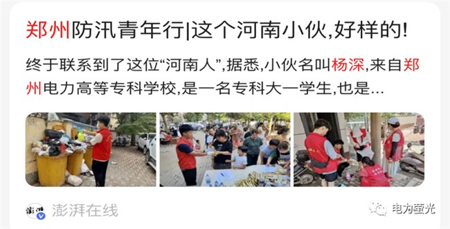 7月21日,雨小了,雨停了!路上一片狼藉,地面塌陷、社區(qū)停水停電、停車場(chǎng)、地下室被淹,亟待搶修。楊深在河南共青團(tuán)的號(hào)召下,毅然決然報(bào)名參與了社區(qū)志愿服務(wù)工作,先后參與了社區(qū)災(zāi)后消殺、市政清淤、交通管理、物資搬運(yùn)等工作。4天的時(shí)間,先后消殺清潔三個(gè)社區(qū),清淤兩條街道,為城市基本秩序恢復(fù)做出了豐厚貢獻(xiàn)。澎湃新聞和源流雜志也先后為楊深的志愿者經(jīng)歷做出特別報(bào)道。