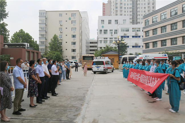 緊接著8月4日,醫(yī)院又迅速集結(jié)一支涵蓋肝膽病科、腦病科、介入科、腎病科、呼吸科、血液腫瘤科、心血管科、骨傷科、婦產(chǎn)科、內(nèi)分泌科等多個專業(yè),擁有104名人員的緊急醫(yī)療工作隊,前往定點救治醫(yī)院開展工作。