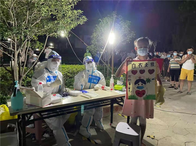 “厚重的防護服穿在身上,就是一份沉甸甸的責(zé)任。作為共產(chǎn)黨員,我不能辜負組織的信任,百姓的期盼。”一位在核酸采集點的工作人員,這樣說道。