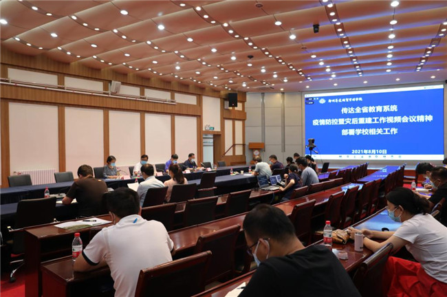中新河南網(wǎng)8月12日電(魏巍 郭金超)8月9日全省教育系統(tǒng)舉行疫情防控暨災(zāi)后重建工作視頻會后,鄭州升達(dá)經(jīng)貿(mào)管理學(xué)院分別于8月9日下午和8月10日下午,召開疫情防控指揮部工作會和全校專題視頻會議,傳達(dá)學(xué)習(xí)全省教育系統(tǒng)疫情防控暨災(zāi)后重建工作視頻會議精神,貫徹落實(shí)相關(guān)工作任務(wù)要求。全體校領(lǐng)導(dǎo)及各工作專班組長、各單位主管、在校行政人員通過線上和線下參加會議。