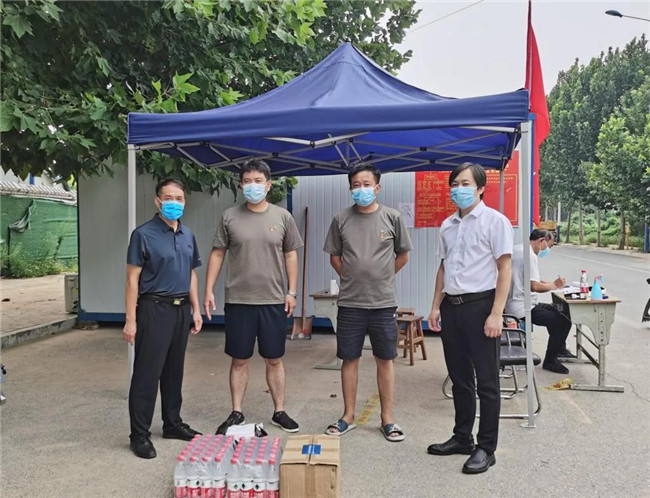 中新河南網(wǎng)8月13日電(魏豪)為堅(jiān)決打贏疫情防控攻堅(jiān)戰(zhàn),更好地承擔(dān)社會責(zé)任,發(fā)揮文明校園的示范引領(lǐng)作用,焦作大學(xué)積極響應(yīng)省文明辦號召,按照就近就便和結(jié)對定點(diǎn)的原則開展“四送一助力”專項(xiàng)行動。8月12日上午,校黨委委員、副校長吳玉倫帶領(lǐng)學(xué)校宣傳統(tǒng)戰(zhàn)部、后勤管理處工作人員,來到學(xué)校所在的新城街道辦事處億祥社區(qū)和學(xué)校結(jié)對幫扶的墻南村疫情防控卡點(diǎn),向在疫情防控一線的社區(qū)工作人員及志愿者送去關(guān)懷慰問和防疫防暑降溫物資,并走訪了解學(xué)校黨員志愿者就近參與社區(qū)疫情防控工作情況。