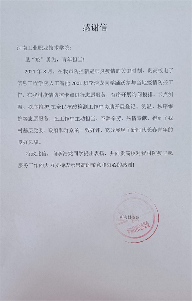 從防汛到防疫,哪里有需要,哪里就有河南工業(yè)職業(yè)技術(shù)學(xué)院青年學(xué)子的身影,在這場沒有硝煙的阻擊戰(zhàn)中,他們用青春詮釋戰(zhàn)“疫”擔(dān)當(dāng),構(gòu)筑起一道道“青春防線”,彰顯新時代青年的責(zé)任和擔(dān)當(dāng)。