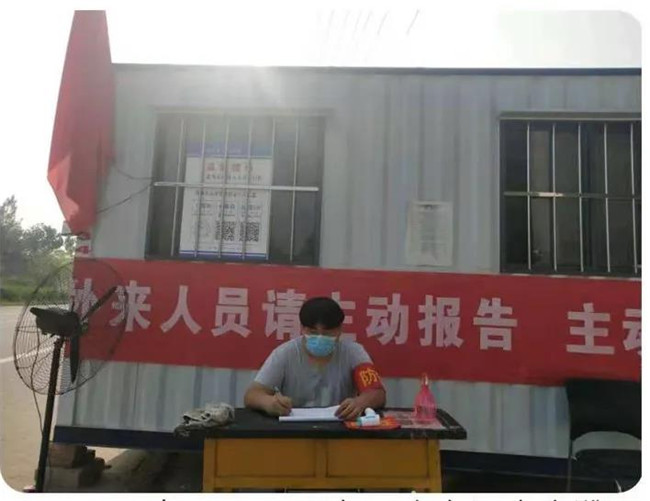 他每天早上6點起床,晚上11點多回家,對過往車輛及人員實施疫情排查防控,對人員進行體溫檢測,檢查健康碼行程碼,確保不漏一人一車。