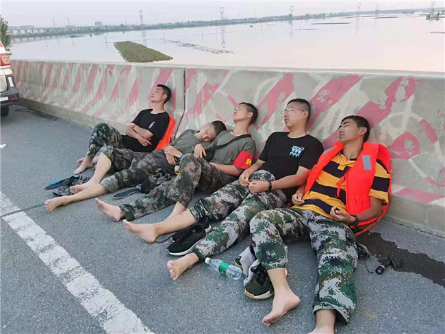 遵從集中專業(yè)優(yōu)勝的原則,田留青重新被調(diào)整到衛(wèi)輝救援第一線去。途徑共產(chǎn)主義渠大橋時他們接到就近轉(zhuǎn)移過河群眾的任務(wù),田留青迅速下車,在炎熱的太陽下維持秩序、轉(zhuǎn)移上下船群眾。盡管頭部被曬傷,胳膊上也起了大面積的水泡,但他始終沒有停下腳步,連續(xù)奮戰(zhàn)十三個小時,直到與其他救援隊輪換休息,疲憊的他才靠著橋的護(hù)欄坐下來,稍微休息一下。