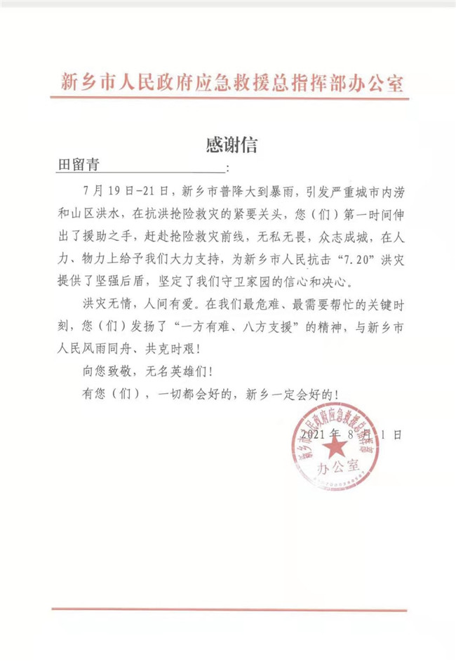 救援結(jié)束后田留青返回了家鄉(xiāng),他還收到了新鄉(xiāng)市政府的感謝信。8月初,他又有了新的身份,成為社區(qū)的一名防疫志愿者。每天從早到晚,他一直在忙碌著:登記來訪人員、量測體溫、防疫消殺……“我也有一份清澈的愛,想要獻(xiàn)給祖國和人民。”田留青希望自己能貢獻(xiàn)出更多的青春力量。