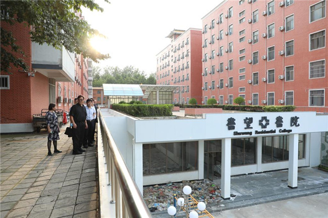匯報(bào)會(huì)后,張寶柱一行深入該校藝術(shù)樓、發(fā)熱隔離區(qū)、書(shū)望書(shū)院、南湖等地,實(shí)地查看該校災(zāi)后重建、疫情防控、開(kāi)學(xué)準(zhǔn)備情況。