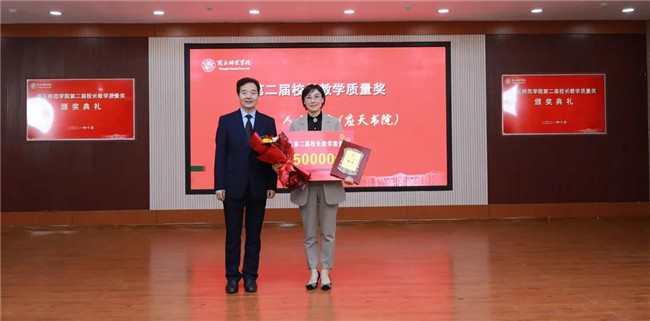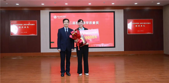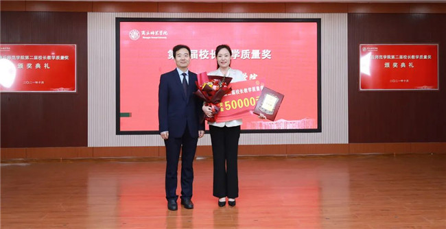 陳向煒與校長(zhǎng)教學(xué)質(zhì)量獎(jiǎng)獲得者李靜頒獎(jiǎng)合影