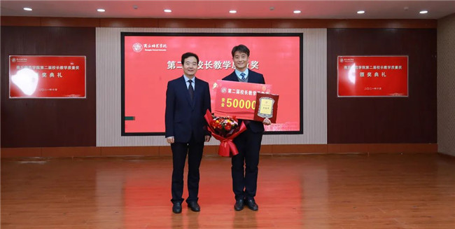 陳向煒與校長(zhǎng)教學(xué)質(zhì)量獎(jiǎng)獲得者劉培培頒獎(jiǎng)合影