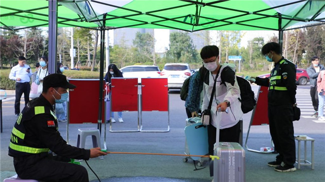 校黨委書記別榮海等校領(lǐng)導(dǎo)現(xiàn)場指導(dǎo)學(xué)生返校