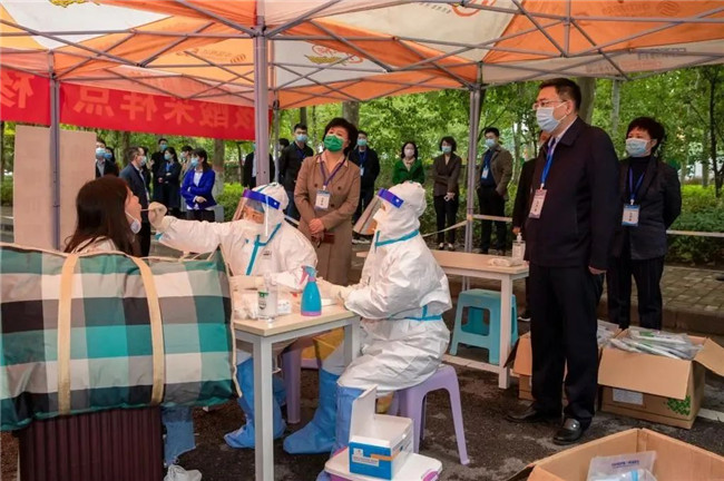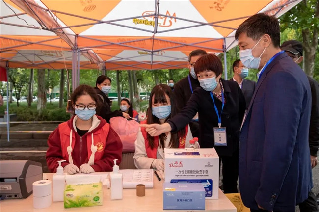 校長許二平等校領(lǐng)導(dǎo)現(xiàn)場指導(dǎo)學(xué)生返校