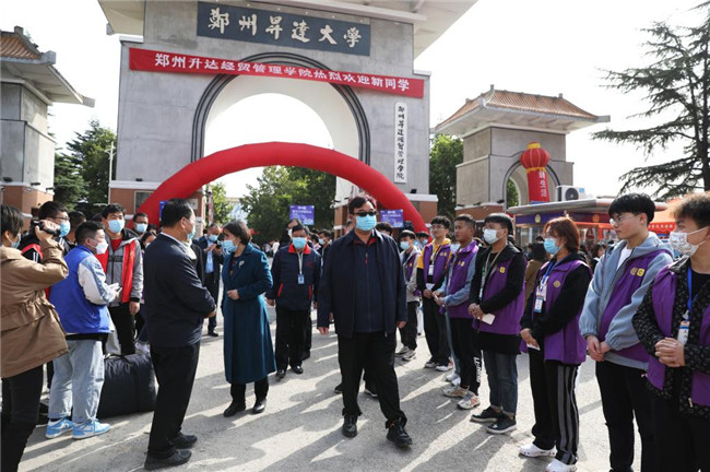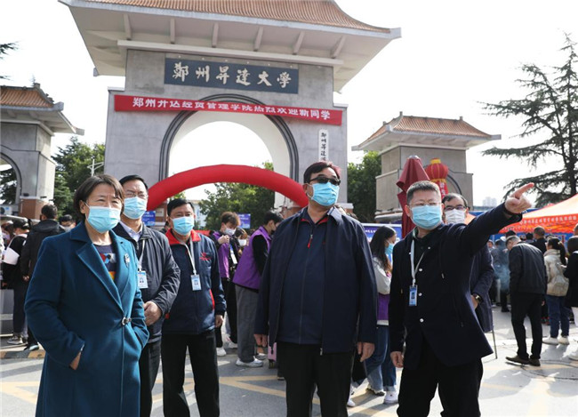上午10時(shí)許,校領(lǐng)導(dǎo)一行前往學(xué)校西門口巡視新生報(bào)到及疫情防控工作,走訪看望來(lái)校報(bào)到的新生以及學(xué)生家長(zhǎng),詢問(wèn)學(xué)生來(lái)自哪里、路上行程是否順利,叮囑同學(xué)們要做好自我防護(hù),慰問(wèn)迎新工作人員和志愿者,了解新生報(bào)到情況,指導(dǎo)迎新工作的開展,并對(duì)各單位為迎新工作所付出努力和細(xì)致工作表示肯定。接著,校領(lǐng)導(dǎo)一行又到西門口家長(zhǎng)休息區(qū)、學(xué)校東大門、建工校區(qū)、學(xué)生宿舍、新圖書館大樓等地實(shí)地察看,強(qiáng)調(diào)要切實(shí)做好學(xué)生入學(xué)報(bào)到的各項(xiàng)工作,讓學(xué)生們體會(huì)家的溫暖和熱情,讓每一位家長(zhǎng)放心。據(jù)悉,10月17日?qǐng)?bào)到的學(xué)生分別為金貿(mào)學(xué)院、會(huì)計(jì)學(xué)院、商學(xué)院、信工學(xué)院的3827名新生;10月18日?qǐng)?bào)到的學(xué)生分別為管理學(xué)院、外語(yǔ)學(xué)院、文法學(xué)院、藝術(shù)學(xué)院、建工學(xué)院、體育學(xué)院、交通學(xué)院的3728名新生。