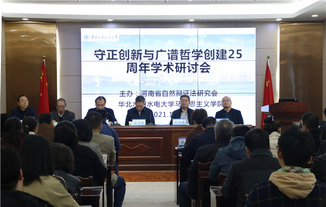 2021年10月17日,恰逢華北水利水電大學70周年校慶,由河南省自然辯證法研究會和華北水利水電大學聯(lián)合舉辦的主題為“守正創(chuàng)新與廣譜哲學創(chuàng)建25周年學術(shù)研討會”在馬克思主義學院325學術(shù)報告廳舉行。華北水利水電大學原黨委副書記、鄭州商學院黨委書記馬書臣教授致辭,河南省社科院原院長、河南省自然辯證法研究會秘書長張占倉研究員講話。來自省內(nèi)外高校教師及華北水利水電大學馬克思主義學院師生100余人參加了會議。