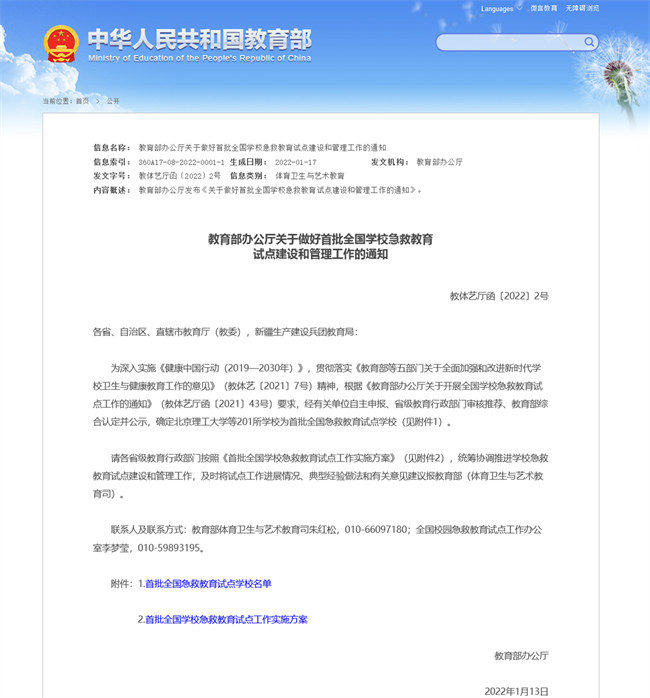 中新河南網(wǎng)1月29日電(馬雪剛) 近日,教育部辦公廳印發(fā)《關(guān)于做好首批全國學(xué)校急救教育試點建設(shè)和管理工作的通知》,公布首批201所全國急救教育試點學(xué)校名單和《首批全國學(xué)校急救教育試點工作實施方案》。河南省僅有7所高校成功入選首批全國學(xué)校急救教育試點學(xué)校,河南交通職業(yè)技術(shù)學(xué)院(簡稱“河南交院”)榜上有名。