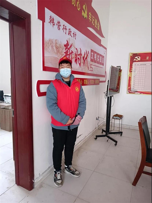 他參加了韓營行政村大學生返鄉(xiāng)的志愿活動。在此次活動中,崔帥威參加房屋排查,疫情站崗和統(tǒng)計勞動力等。和大家一起站在了疫情防控的第一線,通過此次活動,他感受到了志愿者們的團結、勇敢,負責任的態(tài)度,他說自己的家鄉(xiāng)培育了他,他能為家鄉(xiāng)盡一點綿薄之力,也是他的榮幸。他相信疫情終會散去,我們的祖國會越來越好!