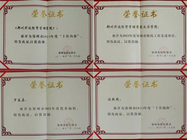此次評(píng)選,該校校報(bào)從鄭州市參評(píng)的幾十家內(nèi)資中脫穎而出,從版面設(shè)計(jì)到稿件類別等,均獲得專家評(píng)審的一致好評(píng)。至此,該校校報(bào)已連續(xù)兩年(2020年、2021年)被鄭州市出版協(xié)會(huì)評(píng)為“十佳內(nèi)資”