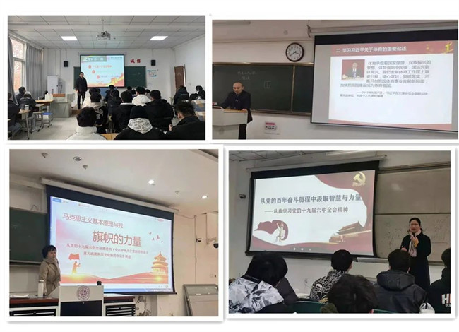 自2月21日新學(xué)期第一周上課以來(lái),馬克思主義基本原理教研室以“旗幟的力量”為主題,從《中共中央關(guān)于黨的百年奮斗重大成就和歷史經(jīng)驗(yàn)的決議》談起,融會(huì)貫通馬克思主義中國(guó)化的成果鋪展開(kāi)來(lái)。毛澤東思想和中國(guó)特色社會(huì)主義理論體系概論教研室結(jié)合會(huì)議精神,突出了我們黨在百年奮斗歷程中形成的十條歷史經(jīng)驗(yàn)和民族自信,通過(guò)北京2022年冬奧會(huì)突出體育強(qiáng)國(guó)精神和文化自信。中國(guó)近現(xiàn)代史綱要教研室?guī)ьI(lǐng)學(xué)生回顧黨的百年歷程,做好回望歷史、展望未來(lái)。思想道德與法治教研室則緊密結(jié)合北京2022年冬奧會(huì)、冬殘奧會(huì)、中國(guó)女足亞洲杯奪冠等體育盛會(huì)、體育賽事,以“如何成為能夠擔(dān)當(dāng)民族復(fù)興大任的時(shí)代新人”為視角,與學(xué)生一起討論如何強(qiáng)健體魄、積極心態(tài)、健全人格、錘煉意志,進(jìn)而培養(yǎng)“擔(dān)大任”的意志品質(zhì)。形勢(shì)與政策教研室則講清楚北京冬奧會(huì)如何向世界展示了更加真實(shí)、立體、自信的中國(guó),展現(xiàn)了陽(yáng)光、富強(qiáng)、開(kāi)放、充滿激情希望的國(guó)家和人民形象。
