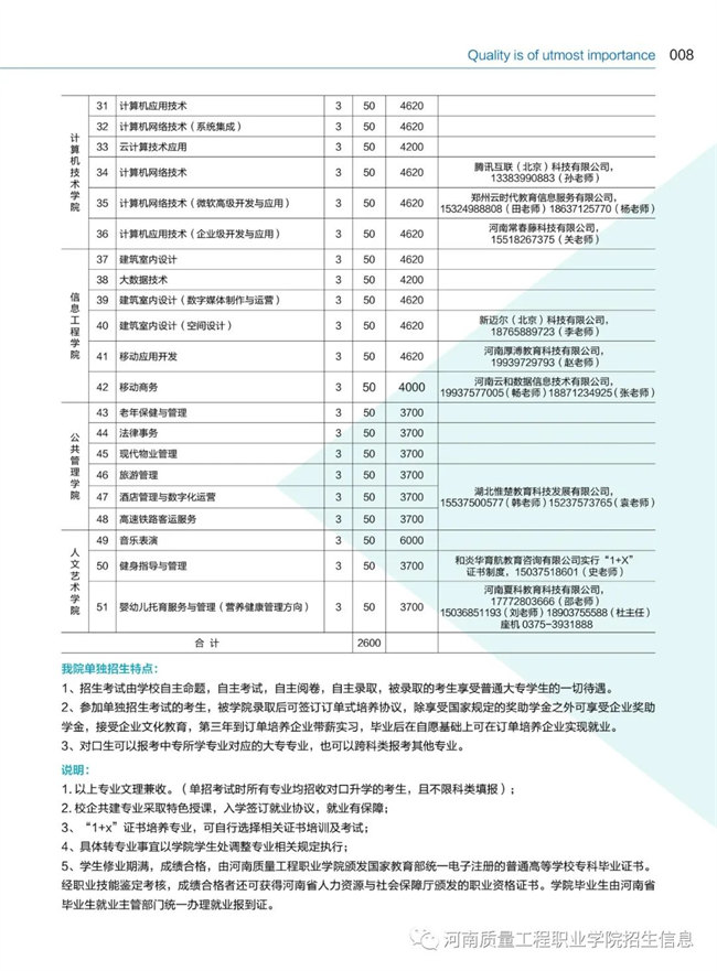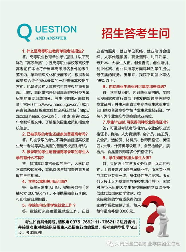 河南質量工程職業(yè)學院2022年單獨招生簡章