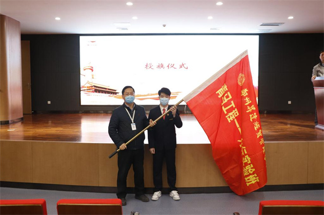 儀式在激昂的團(tuán)歌聲中拉開序幕。大會宣讀了第五期力行實驗班學(xué)員和班委名單,介紹了本期青馬班相關(guān)安排。學(xué)員董祚宇、黃豫安分別代表第四期學(xué)員、第五期學(xué)員發(fā)言。張金安為第五期“青馬工程——力行試驗班”授旗。