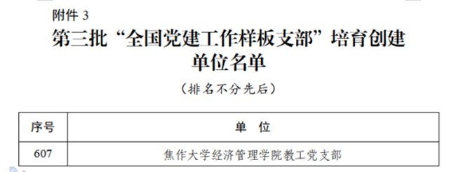 經(jīng)濟(jì)管理學(xué)院教工黨支部在學(xué)校黨委的正確領(lǐng)導(dǎo)下,高度重視黨建工作,將黨建工作與思政教育、專業(yè)建設(shè)、學(xué)生工作雙融雙促,充分調(diào)動(dòng)教師黨員的積極性、主動(dòng)性和創(chuàng)造性,發(fā)揮基層黨組織在立德樹人、價(jià)值引領(lǐng)、教學(xué)科研、人才培養(yǎng)、服務(wù)地方的優(yōu)勢,以內(nèi)涵式發(fā)展推動(dòng)“雙高”建設(shè),把黨建優(yōu)勢轉(zhuǎn)化為學(xué)院發(fā)展優(yōu)勢,先后獲得焦作市“標(biāo)準(zhǔn)化規(guī)范化建設(shè)示范黨支部”、焦作市“先進(jìn)基層黨組織”、河南省首批全省高校“省級樣板黨支部”。