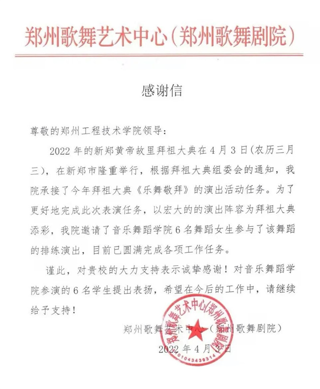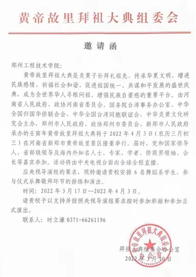 鄭州工程技術學院音樂舞蹈學院學生參加壬寅年黃帝故里拜祖大典