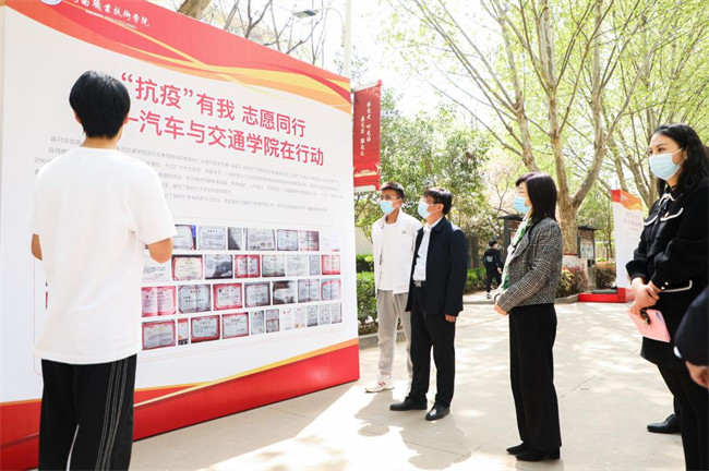 在抗洪抗疫先進(jìn)學(xué)子典型事跡展示中,集中展示了河職學(xué)子在“7·20”洪災(zāi)和疫情期間,積極投身當(dāng)?shù)乜购榭挂咧驹阜⻊?wù)活動(dòng),收到的感謝信和榮譽(yù)證書?购榭挂咂陂g,學(xué)校號(hào)召?gòu)V大學(xué)子就近加入家鄉(xiāng)抗洪抗疫志愿服務(wù)工作,先后有2000余名團(tuán)員青年響應(yīng)號(hào)召加入抗洪抗疫攻堅(jiān)戰(zhàn),累計(jì)收到感謝信900余封,涌現(xiàn)出河南省“抗擊新冠肺炎疫情青年志愿者先進(jìn)個(gè)人”、河南省“疫情防控和防汛救災(zāi)工作優(yōu)秀大學(xué)生”等一批先進(jìn)典型。