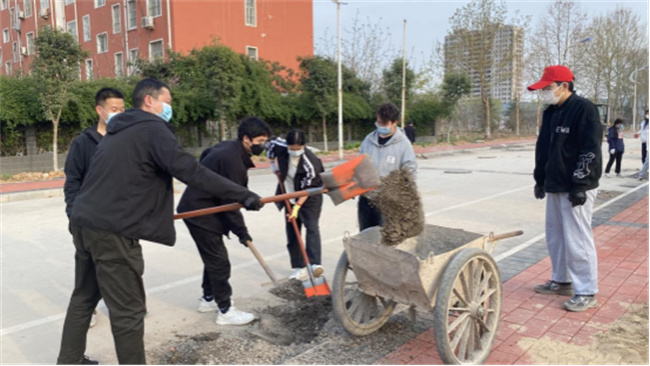 受疫情影響,校園道路改造工程暫停,地磚、沙石堆積路面導(dǎo)致部分道路堵塞。為方便師生通行,排除安全隱患,土木建筑工程學(xué)院組織師生利用專業(yè)技能,對南校區(qū)操場附近和主教學(xué)樓東側(cè)兩處路面分別進(jìn)行了拆除重鋪和路面清理,恢復(fù)了暢通潔凈的安全道路。