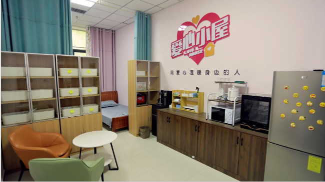 河南中醫(yī)藥大學(xué)本草書院黨委本著“為師生辦實(shí)事”的服務(wù)理念,考慮到疫情環(huán)境下在校師生的不同需求,拾遺補(bǔ)缺、消除盲點(diǎn),不斷完善“愛心小屋”設(shè)施,真正使“小屋”傳“大愛”。小屋內(nèi)增設(shè)了微波爐、消毒柜、電煮鍋、超聲波清洗機(jī)、掛燙機(jī)等生活小電器,配備了醫(yī)藥箱、血壓儀、工具箱等急需物品,以及衣物去球機(jī)、滾筒粘毛器、食物封口機(jī)、吹風(fēng)機(jī)、針線盒、酒精噴壺等貼心小物件,還有舒適的床鋪為有需求的同學(xué)提供臨時(shí)住宿。同時(shí),愛心小屋內(nèi)還有黨員志愿服務(wù)崗的同學(xué)為在校師生提供力所能及的幫助。