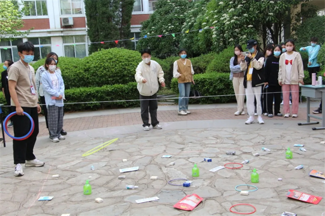 本次主題班會活動包含健身操、套圈兒、夾乒乓球、移動球筐等項目。同學們在活動中踴躍積極、團結協(xié)作,展示才華的同時又緩解了壓力。