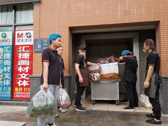 溫馨園餐廳經(jīng)理郝帥領(lǐng)及炊工馮東偉在封控期間堅每天持凌晨4點在防疫卡點將糧油、蔬菜、面條及生活必需品轉(zhuǎn)運到學(xué)校,確保校內(nèi)食堂原材料正常供應(yīng),用實際行動來守護(hù)升達(dá)的和諧穩(wěn)定。山水園餐廳楊玉科接到組織返校炊工到崗的通知后,連夜親自開車到龍湖周邊社區(qū)接年齡較大的保潔人員,為保潔人員安置臨時住宿點;細(xì)心的他還專門采購消毒液、酒精為炊工臨時住宿點消毒、通風(fēng)。