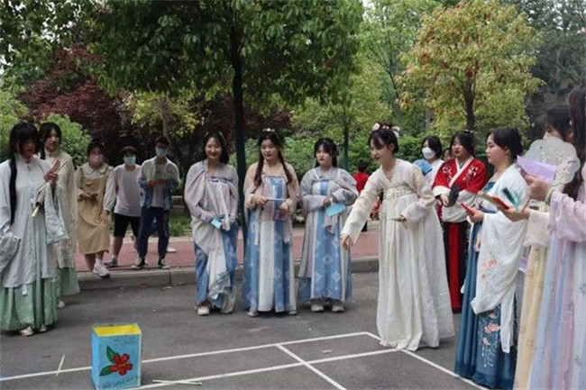 伴著悠悠古風(fēng)伴奏,身著不同顏色和形制漢服的大學(xué)生們列隊(duì)而行,步伐輕盈、典雅別致。她們佩戴著各式精美的發(fā)飾,輕舉團(tuán)扇或手持油紙傘,將漢服的華章之美和淑女的德性之美盡展無遺,舉手投足間盡展古韻美感。本次漢服日活動(dòng)分為猜燈謎、投壺、走秀、游園四個(gè)環(huán)節(jié),活動(dòng)現(xiàn)場(chǎng)熱鬧非凡,以服飾美、容顏美、身形美帶來一場(chǎng)視覺盛宴。