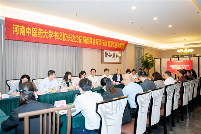 許二平在認(rèn)真聽取企業(yè)介紹后,介紹了學(xué)校的基本情況、學(xué)科建設(shè)、人才培養(yǎng)以及學(xué)校的畢業(yè)生就業(yè)工作。他強調(diào),此次走訪調(diào)研,是落實教育部辦公廳、河南省教育廳開展高校書記校長訪企拓崗促就業(yè)專項行動相關(guān)文件要求的具體舉措。就進一步促進學(xué)校畢業(yè)生充分高質(zhì)量就業(yè),許二平表示,校企雙方要共同探討中醫(yī)藥事業(yè)的發(fā)展、中醫(yī)藥人才的培養(yǎng),為畢業(yè)生搭建就業(yè)橋梁,創(chuàng)建更好的合作平臺;要共同推進就業(yè)基地建設(shè),加強校企融合,校方要為企業(yè)推薦優(yōu)秀畢業(yè)生,同時也誠摯歡迎企業(yè)為學(xué)校人才培養(yǎng)等方面提供寶貴意見和建議。許二平指出,通過本次走訪校友企業(yè),深切感受到了校友對中醫(yī)藥事業(yè)發(fā)展的責(zé)任感、以及濃濃的中醫(yī)藥情結(jié),頗有感觸,希望下一步能攜手未來,共同促進中醫(yī)藥事業(yè)蓬勃發(fā)展。學(xué)校將以此次走訪為契機,進一步提高學(xué)生的理論水平及實踐操作技能,提高職業(yè)能力、就業(yè)本領(lǐng),為中醫(yī)藥事業(yè)發(fā)展做出更大貢獻。