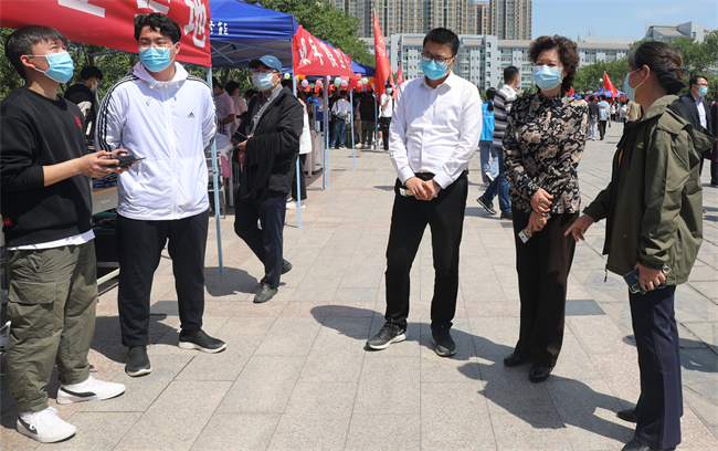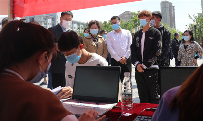 校領(lǐng)導(dǎo)在專業(yè)技能展示區(qū)與學(xué)子合影