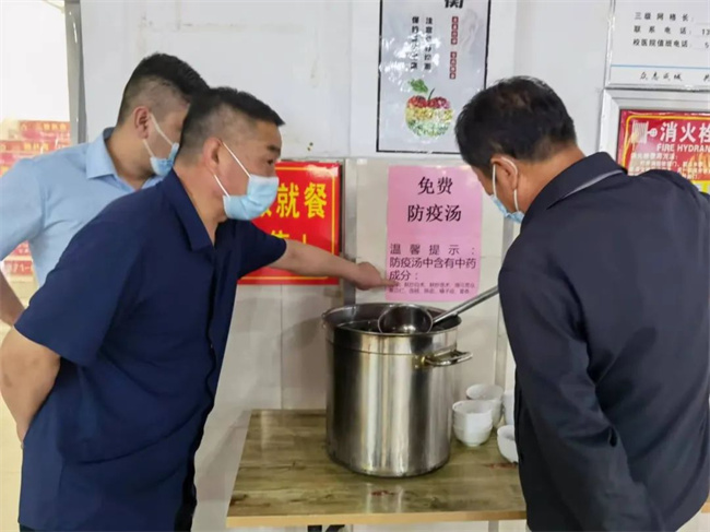 在學(xué)生食堂檢查免費(fèi)供應(yīng)防疫湯