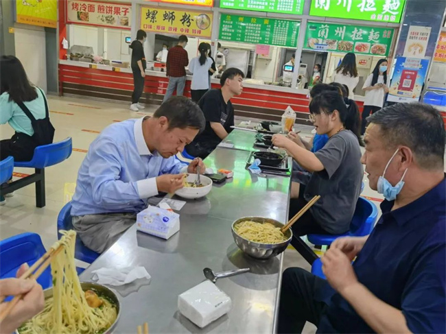 在學(xué)生食堂和學(xué)生一起共餐