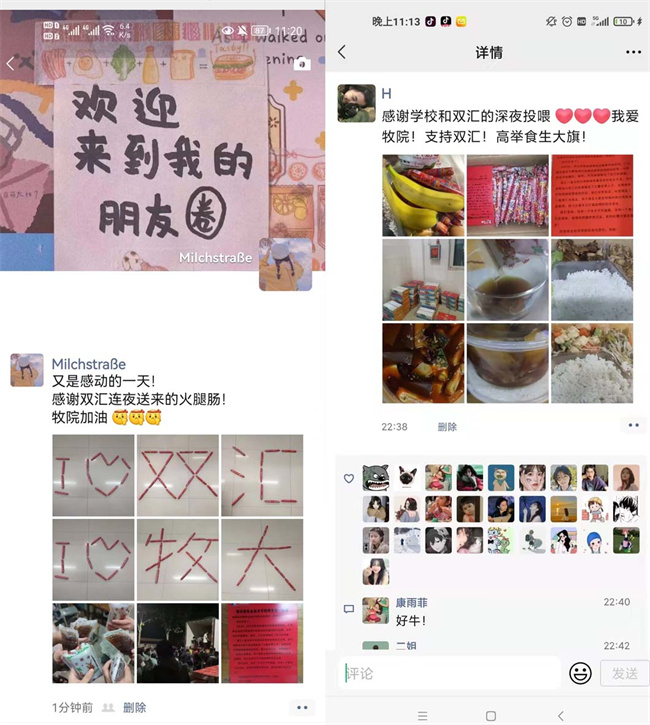收到雙匯捐贈的王中王產品,學生們紛紛涌入雙匯直播間,表達:這是自己吃到最“有愛的”的香腸。并情不自禁地在宿舍中開始了花樣秀感激,為雙匯打call: 雙匯,中!