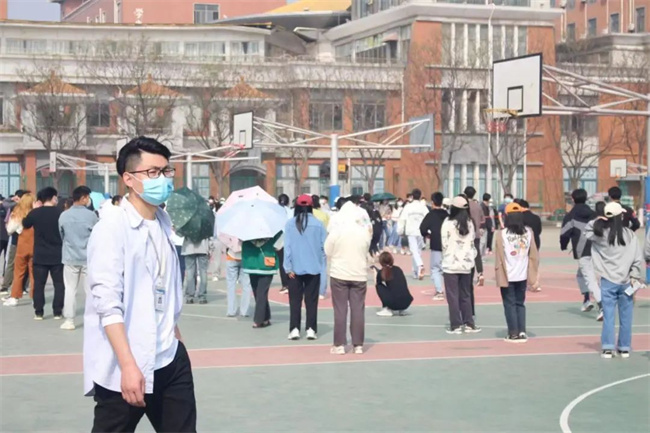 王崇老師的愛人近期做了心臟手術(shù),妻子重病他心焦如焚,可另一邊是師生安危,沉思片刻,他只好托付給家中長(zhǎng)輩幫忙看護(hù),隨即便投入到疫情防控工作之中。疫情期間,他發(fā)布通知100余則,組織全院核酸檢測(cè)2萬(wàn)余人次,摸排重點(diǎn)人員100余人,上報(bào)各類報(bào)告報(bào)表200余份。雖然上報(bào)的是一個(gè)個(gè)數(shù)據(jù),但在他心里,這些數(shù)字承載著全院3600余名師生的生命安全、健康成長(zhǎng)的重量。