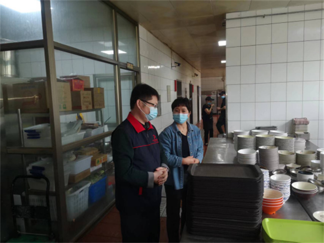 檢查過程中,張其武首先代表學校對廣大后勤人員在校園封閉管理期間的辛勞付出表示衷心的感謝。隨后,他帶隊對所有餐廳及商業(yè)街的每一個后廚油煙抽排、操作間衛(wèi)生、餐具清洗消毒、消防設(shè)施安全等部位進行了逐一檢查,并詳細詢問了食品安全、消防安全、餐具消毒等近期工作情況,對檢查過程中發(fā)現(xiàn)的問題要求應(yīng)改盡改、立行立改,對于不能立改的,要列出整改計劃限期整改。