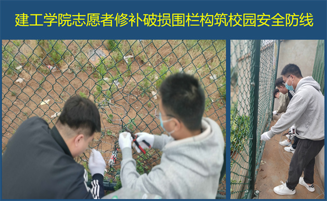 5月9日,建工學(xué)院志愿者在巡視校園時(shí)發(fā)現(xiàn)東校區(qū)圍欄個(gè)別地方有破損,立即向?qū)W院做了報(bào)告。在院長(zhǎng)楊開(kāi)云的協(xié)調(diào)下,實(shí)驗(yàn)室教師和志愿者一起將破損圍欄修補(bǔ)完好,阻斷了疫情傳播風(fēng)險(xiǎn),維護(hù)了校園安全。