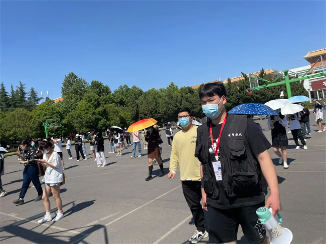 本學(xué)期,疫情防控形勢(shì)緊張,作為金貿(mào)學(xué)院學(xué)生骨干,申曉陽(yáng)同學(xué)共組織出勤核酸檢測(cè)工作13次,主要負(fù)責(zé)核酸檢測(cè)時(shí)的秩序維護(hù)工作。為了保證間隔兩米,不管是烈日當(dāng)頭還是刮風(fēng)下雨,申曉陽(yáng)同學(xué)總會(huì)在核酸檢測(cè)前一天到現(xiàn)場(chǎng)一個(gè)一個(gè)檢查地標(biāo)有無(wú)缺失,及時(shí)修補(bǔ),確保核酸檢測(cè)有序進(jìn)行。核酸檢測(cè)進(jìn)行中,申曉陽(yáng)同學(xué)組織志愿者團(tuán)隊(duì),不間斷提醒同學(xué)們提前打開(kāi)核酸登記碼,保持兩米間隔的距離排好隊(duì)伍;并引導(dǎo)同學(xué)們不插隊(duì)、不掉隊(duì),文明有序等待檢測(cè)。
