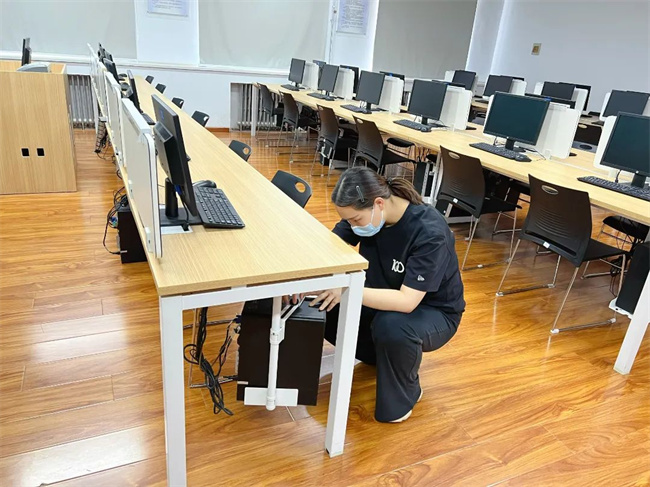 作為實(shí)驗(yàn)員,除了實(shí)驗(yàn)室的常規(guī)性工作外,李飛飛每天下班親自帶領(lǐng)學(xué)生收拾實(shí)驗(yàn)室衛(wèi)生、檢查門(mén)窗電是否正常關(guān)閉,并對(duì)實(shí)驗(yàn)室進(jìn)行消毒、通風(fēng),為明日上課師生做好準(zhǔn)備。由于實(shí)驗(yàn)室電腦已過(guò)質(zhì)保期,白屏問(wèn)題逐漸出現(xiàn),李飛飛同志對(duì)各個(gè)實(shí)驗(yàn)室電腦逐一排查,對(duì)出現(xiàn)有問(wèn)題的電腦及時(shí)更換主板電池,對(duì)于自己不能解決的問(wèn)題,上報(bào)給相關(guān)部門(mén)進(jìn)行維修。
