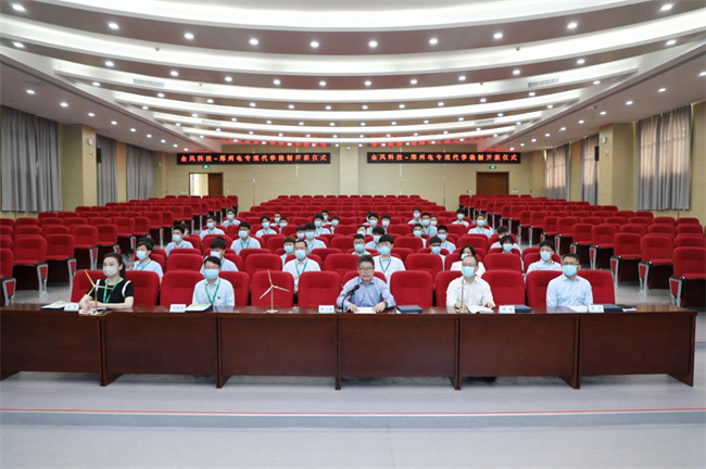 此次金風(fēng)科技現(xiàn)代學(xué)徒制班級的開設(shè),更加推動了產(chǎn)教融合校企合作的步伐,對企業(yè)發(fā)展、鄭州電力高等?茖W(xué)校發(fā)展和行業(yè)發(fā)展都具有重要的現(xiàn)實意義。為后期建設(shè)具有輻射引領(lǐng)作用的高水平、專業(yè)化產(chǎn)教融合基地、產(chǎn)業(yè)學(xué)院和風(fēng)電行業(yè)示范性教師企業(yè)實踐流動站,深入推進校企融合、校企合作、校企互通搭建了良好的協(xié)同育人平臺。今后校企雙方在互學(xué)互鑒、互融互通、共建共贏中,一定能夠共同開啟產(chǎn)教融合發(fā)展的新篇章。也相信今天加入班級的35名同學(xué)在校企雙方的共同培育下,一定能夠努力學(xué)習(xí)職業(yè)技能,用心錘煉過硬本領(lǐng),用扎實、過硬的職業(yè)技術(shù)能力武裝自己,順利邁出職業(yè)生涯的第一步!為具有廣闊前景的風(fēng)電事業(yè)貢獻青年力量。