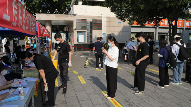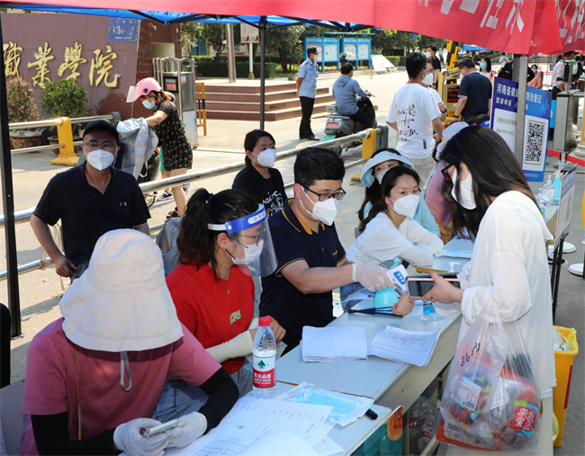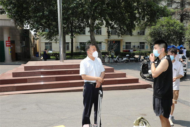 返校報到前,校領導帶領有關部門負責人檢查了宿舍、食堂等重點場所,仔細了解各項工作準備情況,并對學生返校后的學習和生活服務保障工作提出要求。報到當天,校領導在校門口報到點,現場指導返校工作,檢查入校防控措施,了解學生報到健康篩查、核酸采樣、行李消殺等情況,慰問一線工作人員和教職工志愿者。