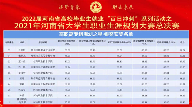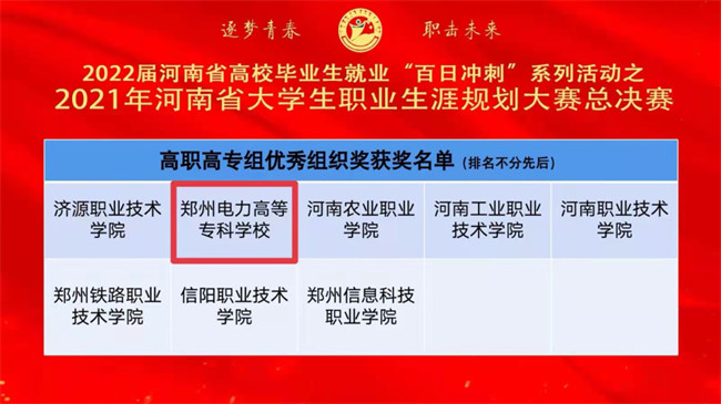 鄭州電力高等?茖W校榮獲“2021年河南省大學生職業(yè)生涯規(guī)劃大賽”一金一銀