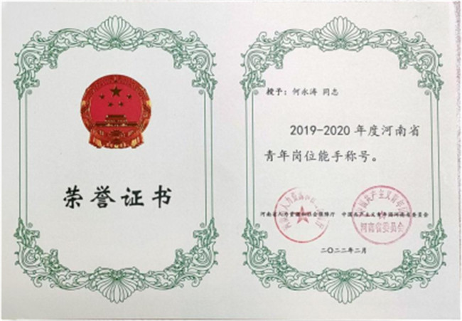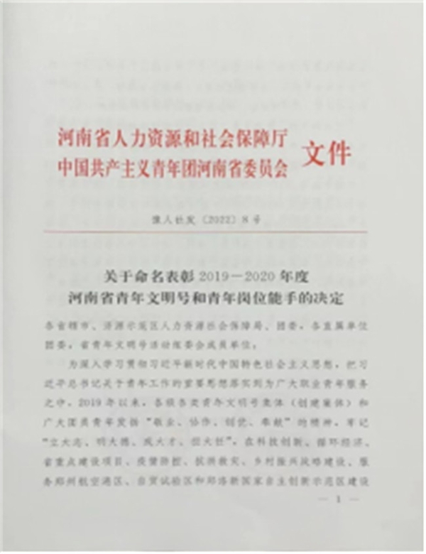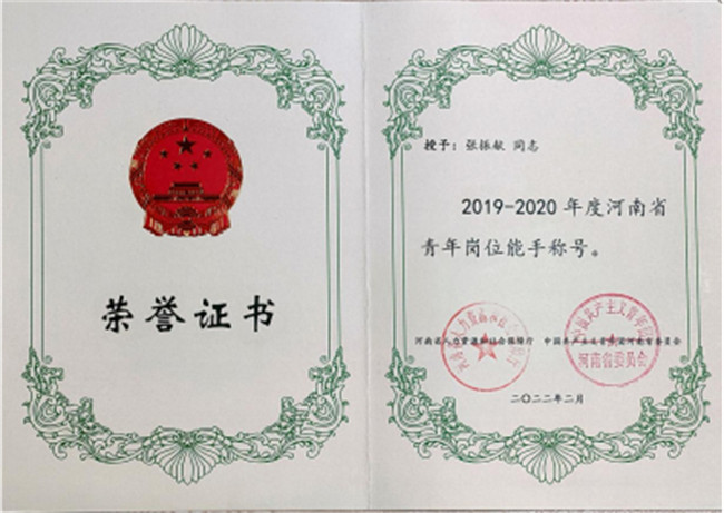 中新河南網(wǎng)6月6日電(李安杰) 近日,河南省人社廳、共青團(tuán)河南省委聯(lián)合下發(fā)《關(guān)于命名表彰2019-2020年度河南省青年文明號(hào)和青年崗位能手的決定》(豫人社發(fā)【2022】8號(hào))。鄭州電力高等?茖W(xué)校電氣工程學(xué)院張振獻(xiàn)、何永濤兩位教師榮獲“河南省青年崗位能手”稱號(hào)。