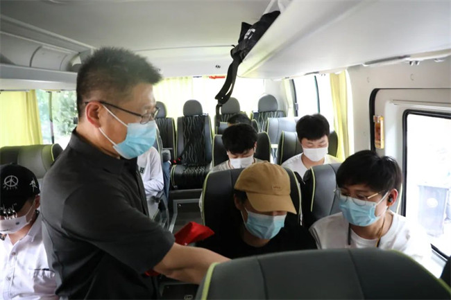 鄭州電力高等?茖W(xué)校根據(jù)乘車學(xué)生數(shù)量精心設(shè)置愛(ài)心專車,“點(diǎn)對(duì)點(diǎn)”把畢業(yè)生送往車站,既方便了學(xué)生乘車,也避免了疫情風(fēng)險(xiǎn)。烈日當(dāng)頭,司機(jī)師傅早早地打開(kāi)空調(diào),騰空行李車廂,打掃好車內(nèi)外衛(wèi)生,等待畢業(yè)生上車。