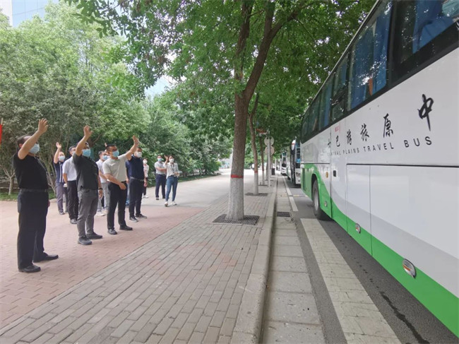 學(xué)校黨委書(shū)記楊義波、黨委副書(shū)記、副校長(zhǎng)宗萬(wàn)偉登上“愛(ài)心專車”為畢業(yè)生送行,還特別為畢業(yè)生送上愛(ài)心防疫包和消暑飲品,在炎熱夏日讓同學(xué)們感受到鄭州電力高等專科學(xué)校的關(guān)心和關(guān)愛(ài)。楊義波一行與同學(xué)們相互揮手道別,祝愿大家一路平安,前程似錦,囑托同學(xué)們有時(shí)間;“家”看看,并表示母校的大門(mén)隨時(shí)為他們敞開(kāi)。
