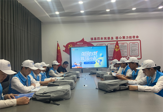 在宣講活動啟動儀式上,指導(dǎo)教師王旭指出,“雙碳”行動迫在眉睫、“雙碳”基礎(chǔ)不斷夯實、:“雙碳”發(fā)展堅定不移,宣傳綠色核能發(fā)展理念、“兩彈一星”精神以及核科普知識意義重大。他要求宣講團同學(xué)們在遵守疫情防控相關(guān)規(guī)定的前提下,認真準備宣講內(nèi)容,精心設(shè)計宣講形式,在志愿宣講實踐中,自覺擔(dān)當(dāng)盡責(zé),迸發(fā)青春能量,綻放志愿青春的絢麗之花!宣講團全體成員表示,將利用線上線下相結(jié)合的方式,通過演示宣講、研究探討、互動交流、視頻展播等多種方式,宣傳綠色核能發(fā)展理念,引導(dǎo)社會公眾和廣大青年學(xué)生深刻認識碳達峰碳中和目標的重大意義,為國家綠色環(huán)保事業(yè)發(fā)展貢獻青春力量。