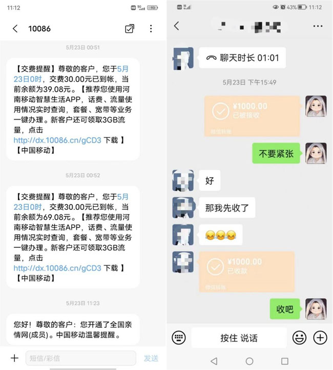 副書記知道這件事情后,非常感動,又給張師傅充了100元話費表示感謝。